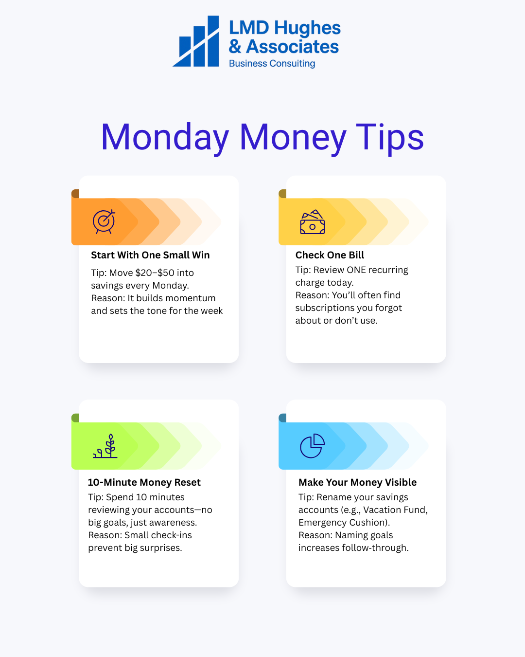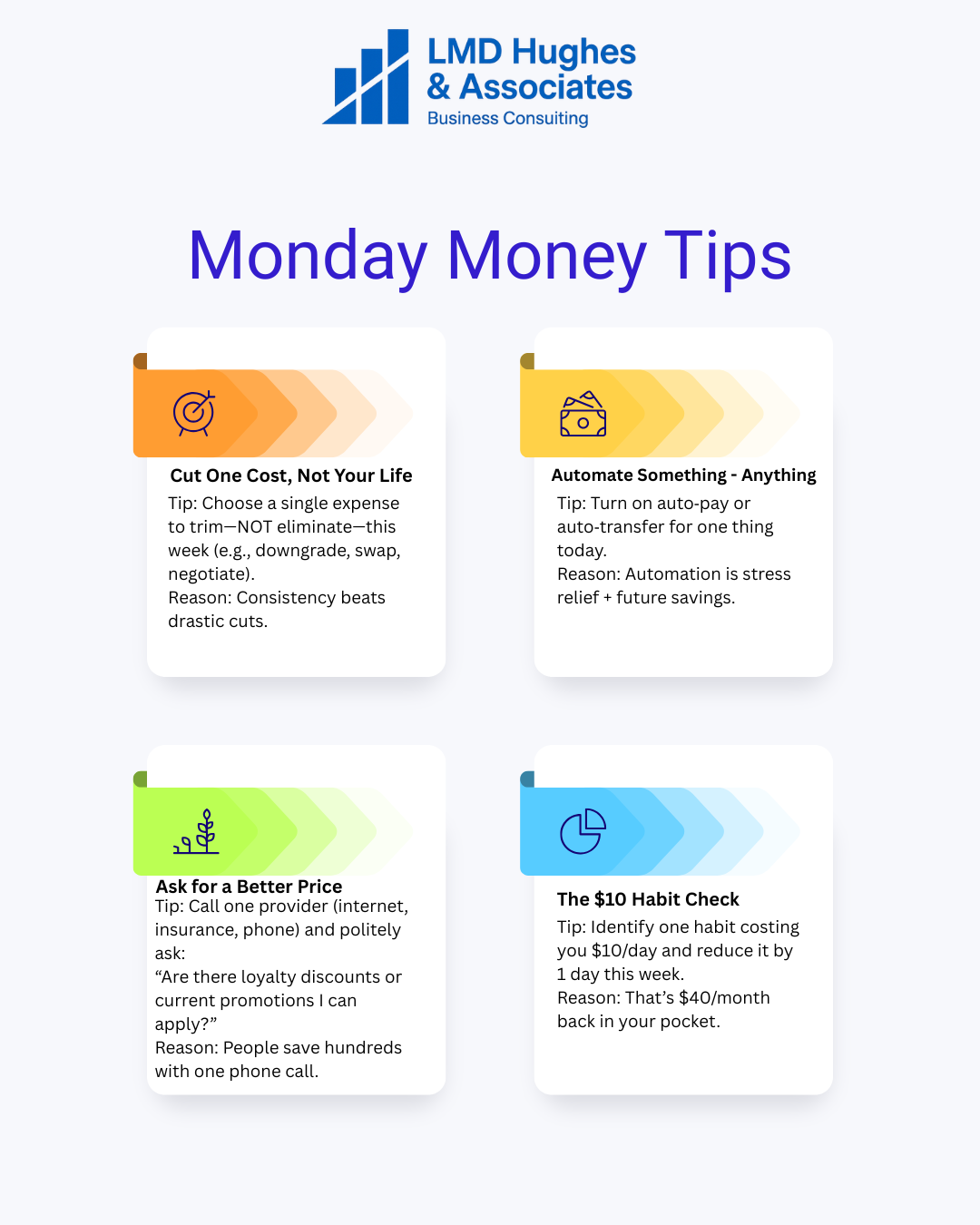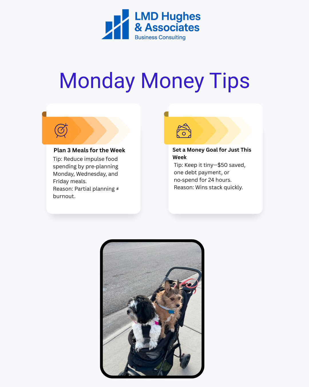 Monday Money Tips Feb 16 Written By Leslie Hughes accountingbookkeepingbusinessconsultingISO QMSmarketing and branding Leslie Hughes https://lmdhughes.com